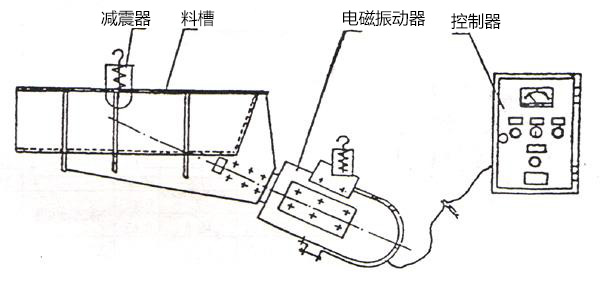 電磁振動給料機(jī)的激振器電磁線圈的電流是經(jīng)過單相半波整流的,當(dāng)線圈接通后在正半周內(nèi)有電流通過,銜鐵和鐵芯之間便產(chǎn)生了脈沖電磁力互相吸引,這時槽體向后運動,激振器的主彈簧發(fā)生變形儲存了一定的勢能,在負(fù)半周線圈中無電流通過,電磁力消失,主彈簧釋放能量,使銜鐵和鐵芯朝反方向離槽體向前運動。于是電磁振動給料機(jī)以交流電源的頻率往復(fù)振動,由于槽體的底平面與激振力作用線有一定的夾角,因此槽體的物料沿拋物線的軌跡連續(xù)不斷地向前運動。調(diào)整整流電壓的高低,即可控制設(shè)備的送料量。